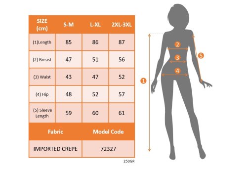 • Modelin Ölçüleri: Boy:165, Kilo:55, Göğüs:90, Bel:72, Kalça: 100