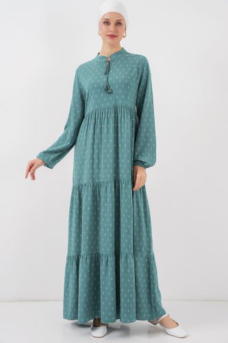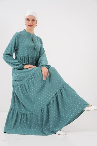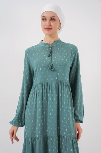 • 1627 Yaka Bağcıklı Tesettür Elbise Mint