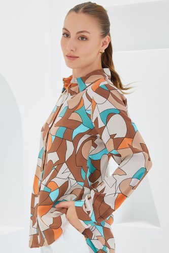 3721 Grafik Desenli Gömlek Sütlü Kahve