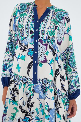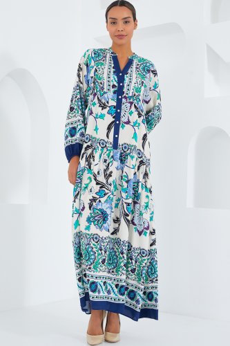 Lacivert Yeşil Viskon Tesettür Elbise 2423
