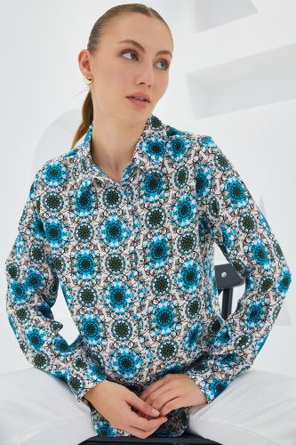 • 3721 Grafik Desenli Gömlek BMavi