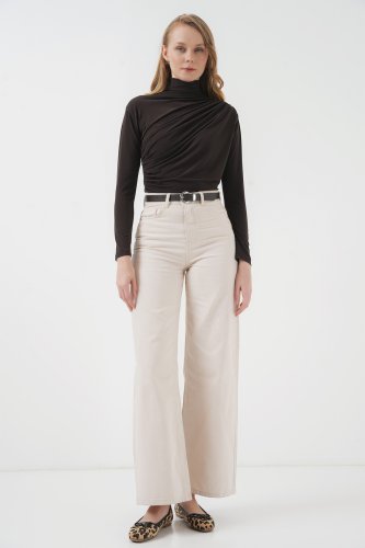 925 Büzgü Detaylı Sandy Bluz Kahverengi