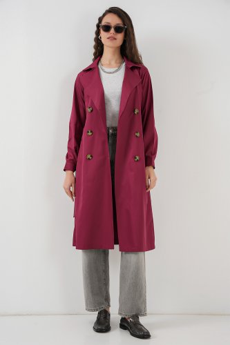 • 5853 Kruvaze Yaka Trençkot Bordo