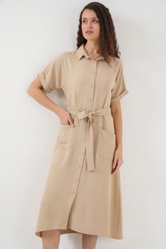 Kısa Kol Elbise 2214 Bej
