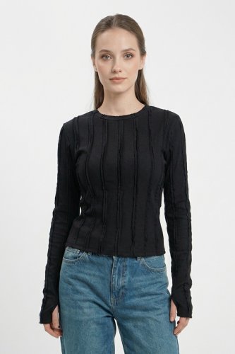 Dokulu Örme Bluz 980 Siyah
