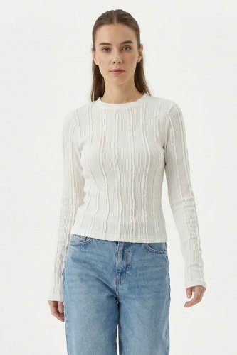 Dokulu Örme Bluz 980 Beyaz